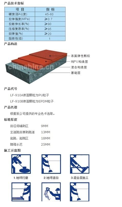 平整度好,摩擦力大,硬度穩(wěn)定,由助于運動員技術(shù)發(fā)揮,提高成績。